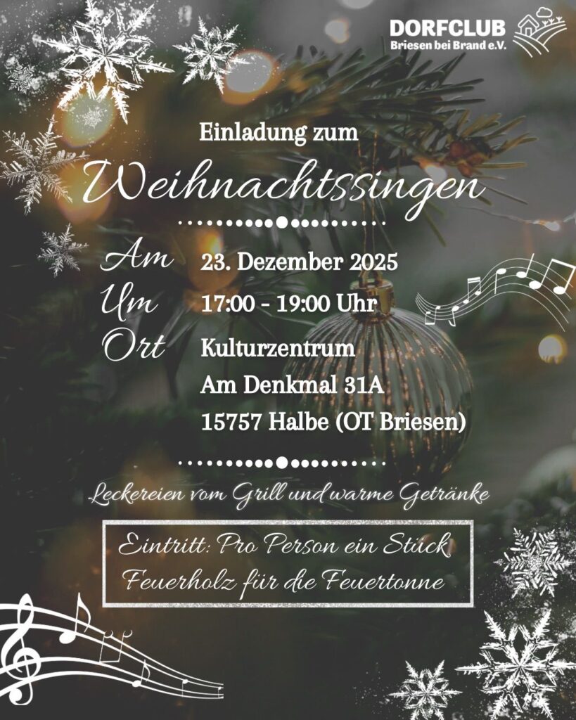 Am 23.12.2025 kam Jung und Alt zusammen um gemeinsam Weihnachtslieder zu singen. An der warmen Feuertonne wurde sich mit Gitarre, Kakao und Glühwein auf die bevorstehende Weihnachtszeit eingestimmt. Vielen Dank an all die Helfer und Helferinnen, die das möglich gemacht haben und an all die Gäste für den Besuch.