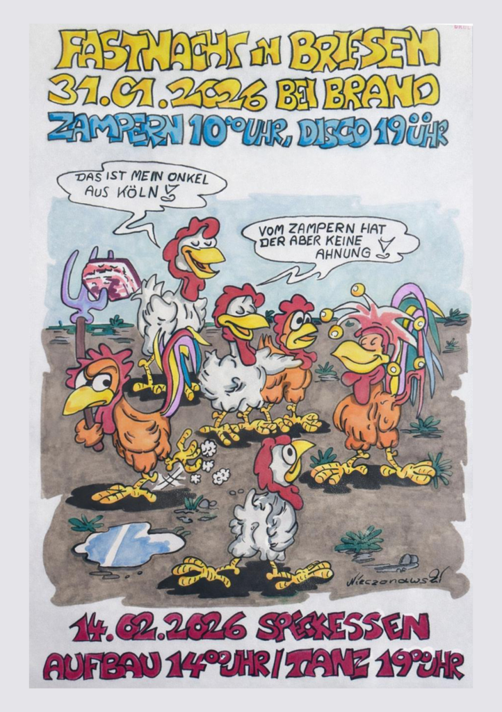 Am 31.01.2026 wurde in unserem Dorf wieder gezampert und zwei Wochen später gemeinsam zum Speckessen getroffen. Trotz eisiger Temperaturen hat die Fastnachtgesellschaft tapfer den ganzen Tag durchgehalten und am Abend gemeinsame gefeiert. Das Zampern (Fastnachten) ist eine Tradition mit sorbischen Wurzeln aus dem Spreewald, bei der die Wintergeister vertrieben werden, damit das Frühjahr kommen kann und eine neue Zeit beginnt. Unter folgendem Link könnt ihr mehr erfahren.